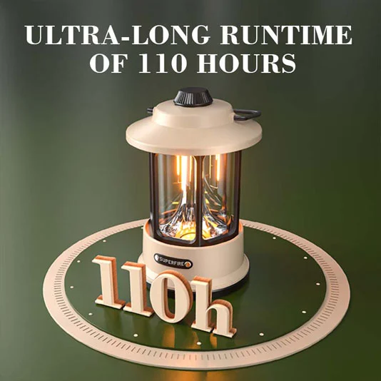 Experience the allure of yesteryears with the SUPERFIRE T35 LED rechargeable retro camping lantern. Its vintage-inspired design and colors evoke a sense of nostalgia while offering modern functionality. With an ultra-long runtime of 110 hours, this lantern is ideal for emergency situations and nighttime outdoor activities. Easily adjust the brightness using the rotary button for tailored illumination. Versatile and lightweight at 300g, it's perfect for various scenarios. Built with IP44 water-resistant materials, it withstands outdoor elements effortlessly. Illuminate your adventures with timeless style and dependable performance.